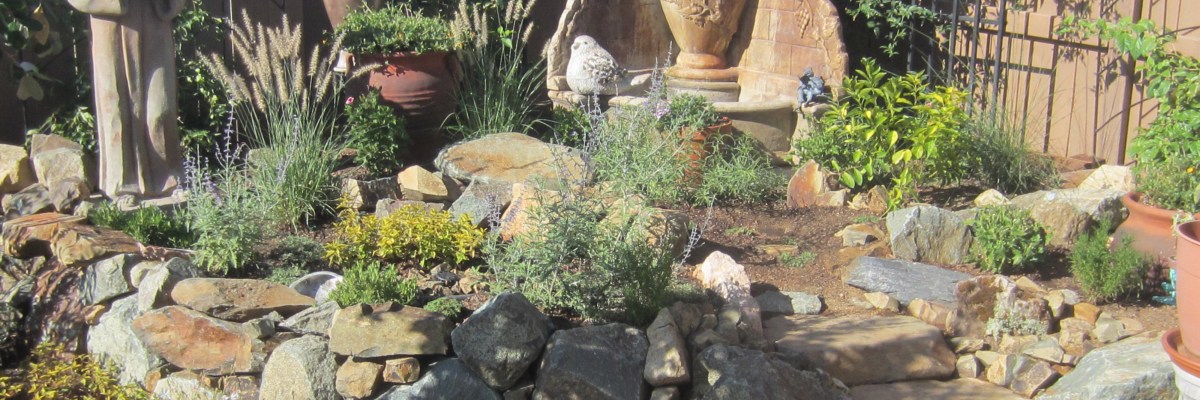 Months evaporated again while laboriously researching and selecting plants, finalizing the design, and waiting for the HOA to approve our yard design. It was also some doing to convince the landscaper we hired to address the rock that appeared to be submerged like an iceberg in the middle of the yard. They had to bring in the big gun, and hammer out a mountain of boulders which had to be removed. I insisted they be replaced with 35 yards of good planting soil, which I further enhanced with gypsum, peat, alfalfa meal, and soil conditioner. The crew (Edgar, Juan, Pedro and Gabriel) was anxious to please and so happy in their work it was a pleasure to watch their efforts.